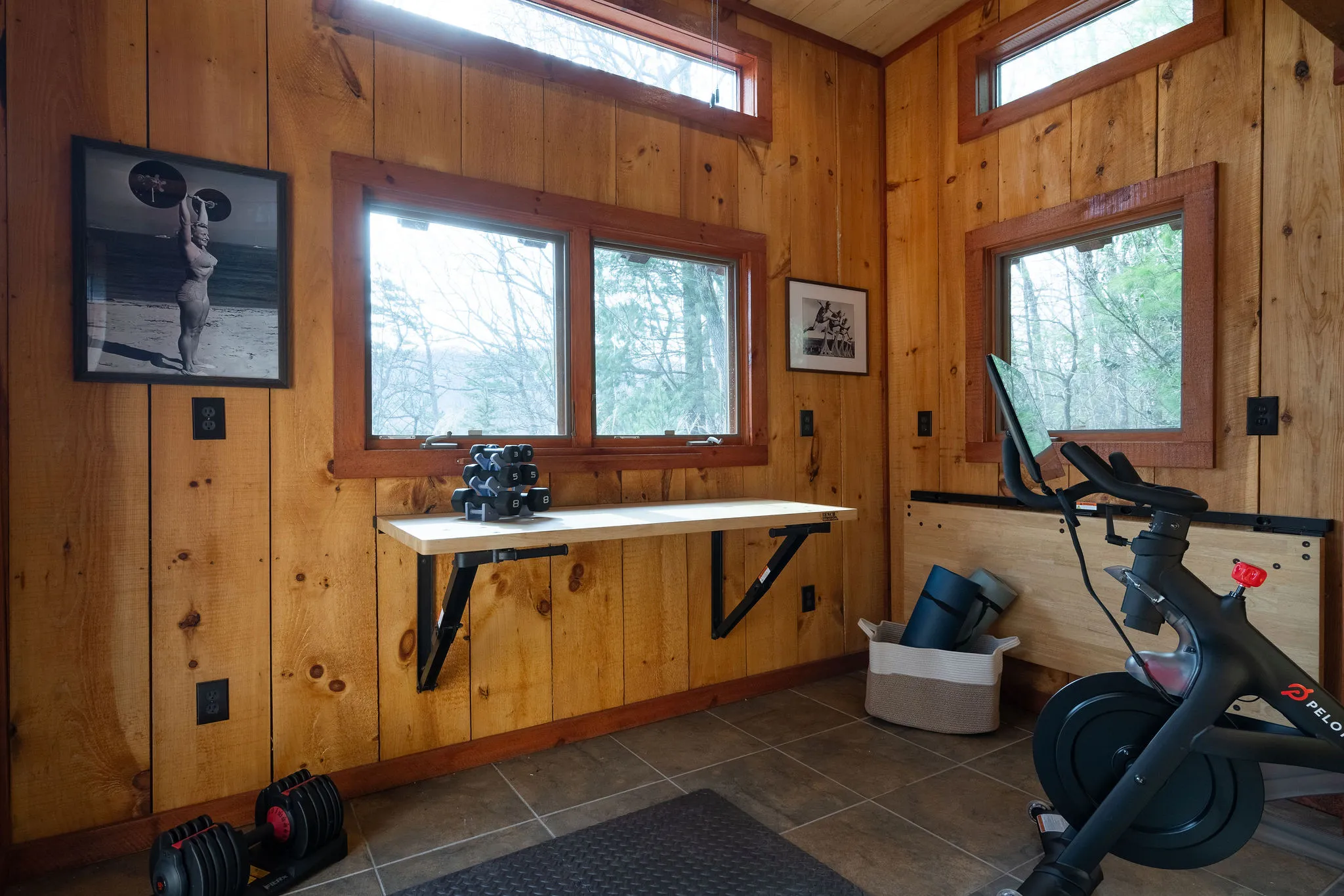 BASECAMP FITNESS Stay active with a Peloton (BYO login), yoga gear, light dumbbells, and a Smartbell. (For guests 18+.)