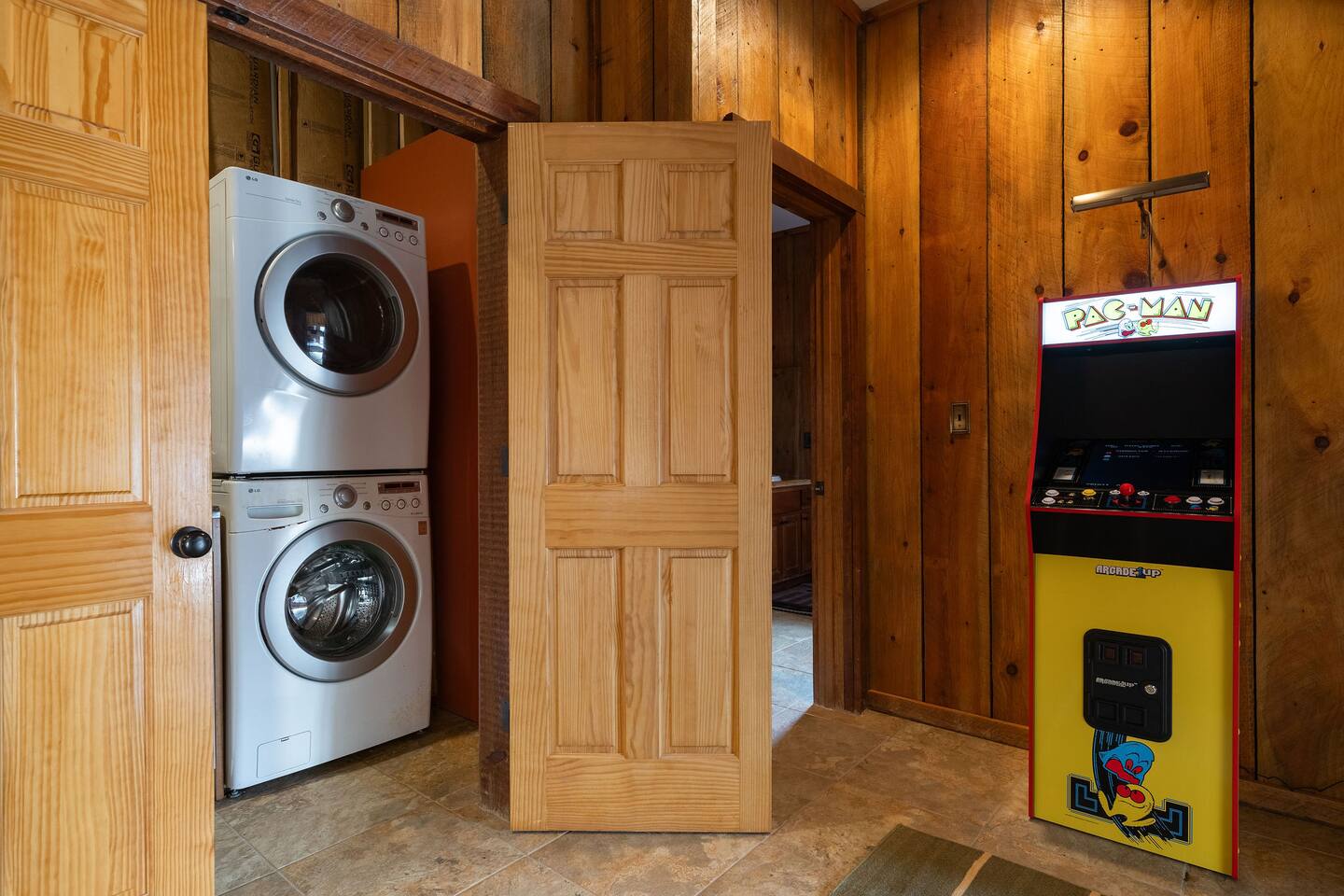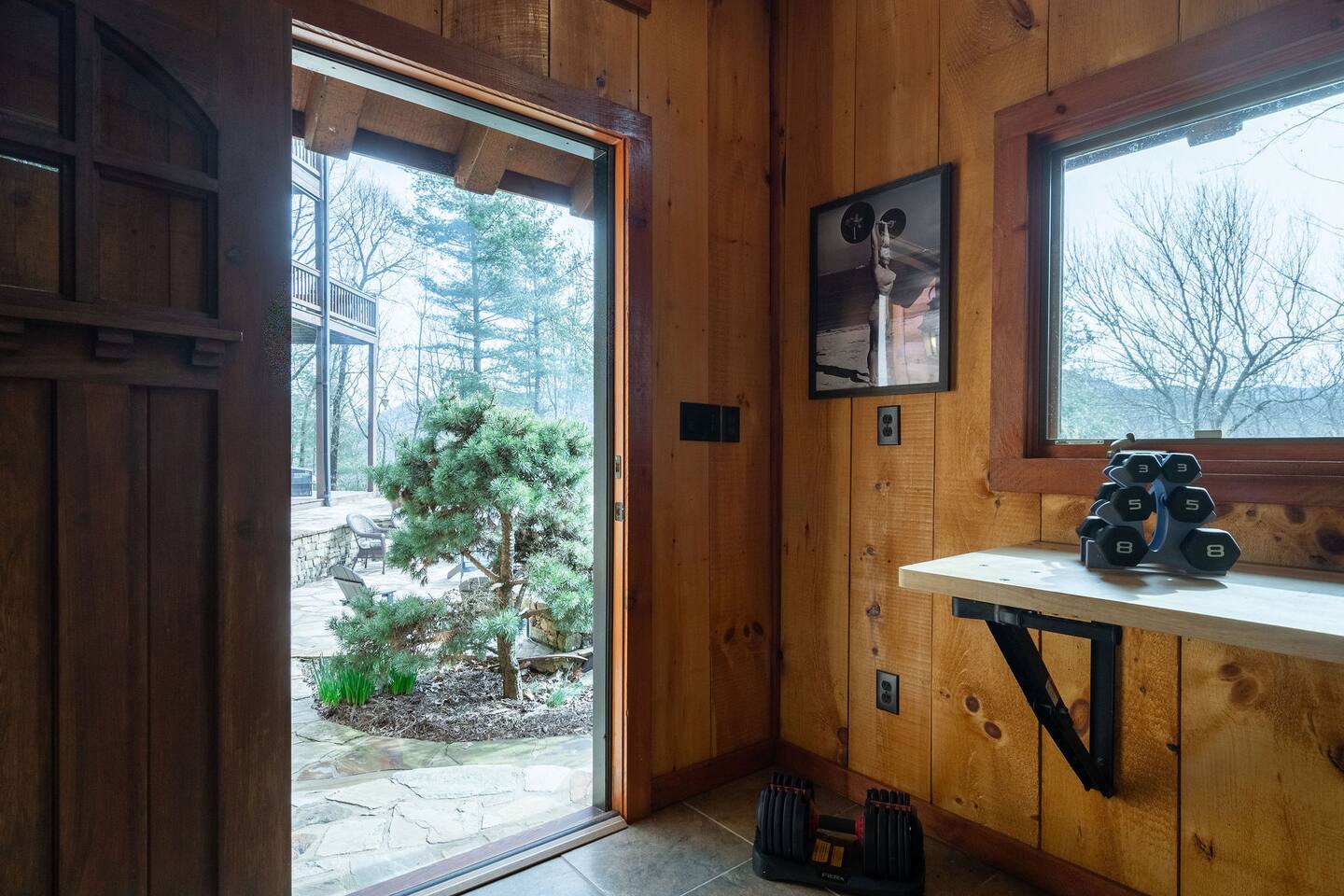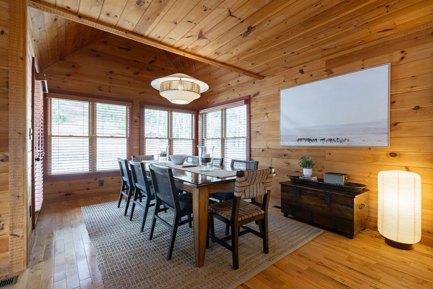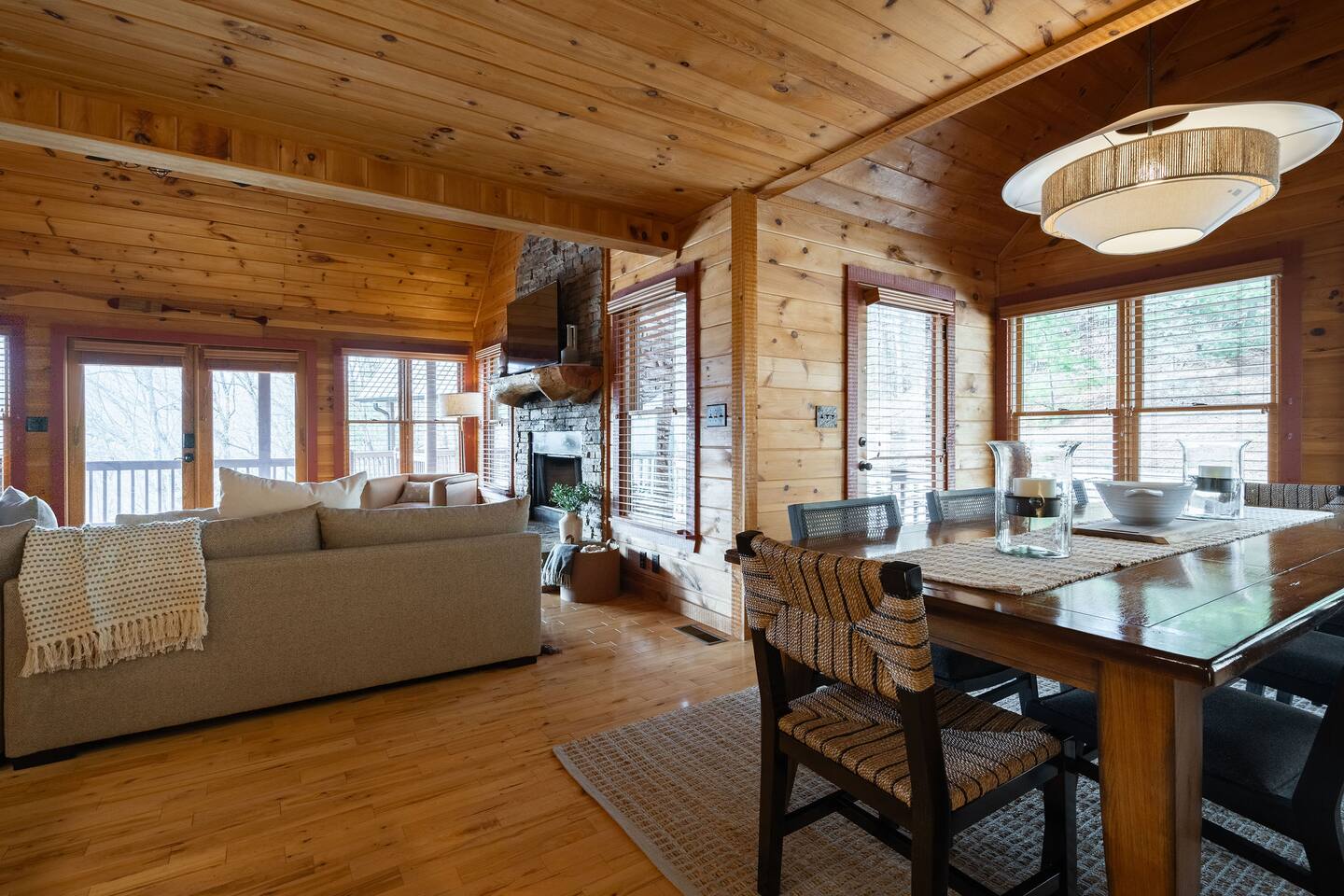 🔥All-paved roads – gated community with no narrow, gravel roads. 🔥Vintage Lounge – Retro-style bar with barware, drink cooler, and arcade game. 🔥Fitness Room – Peloton bike (BYO login), yoga gear, and dumbbells. 🔥Outdoor Retreat – Two balconies plus a stone patio with a hot tub and fire pit, all with stunning views. 🔥Cozy Sleeping Loft – Camp-style loft with three twin beds. 🔥Coffee Bar – Nespresso Vertuo, drip coffee maker, ground coffee, and various sweeteners and creamers. 🔥Cozy Fireplaces – Gas and wood-burning options for warmth and ambiance. 🔥Bluetooth Speaker – Enjoy your favorite music. 🔥Weber gas grill – Propane provided. 🔥Al Fresco Dining – Two outdoor dining areas, one on each level, with scenic views. **Signed rental agreement & $300 security deposit hold required upon booking**