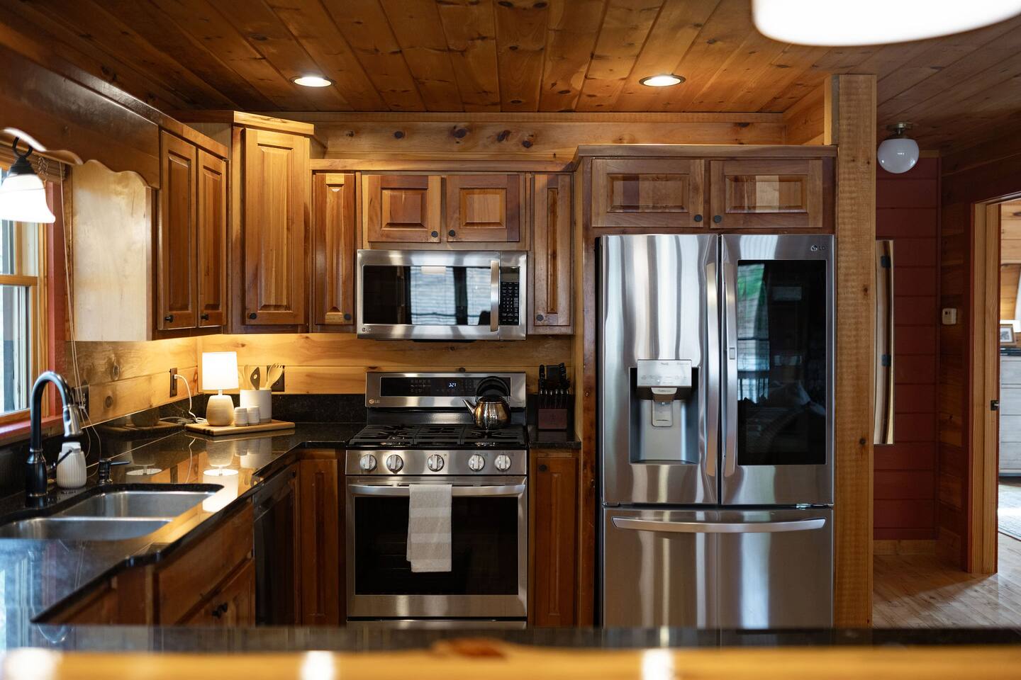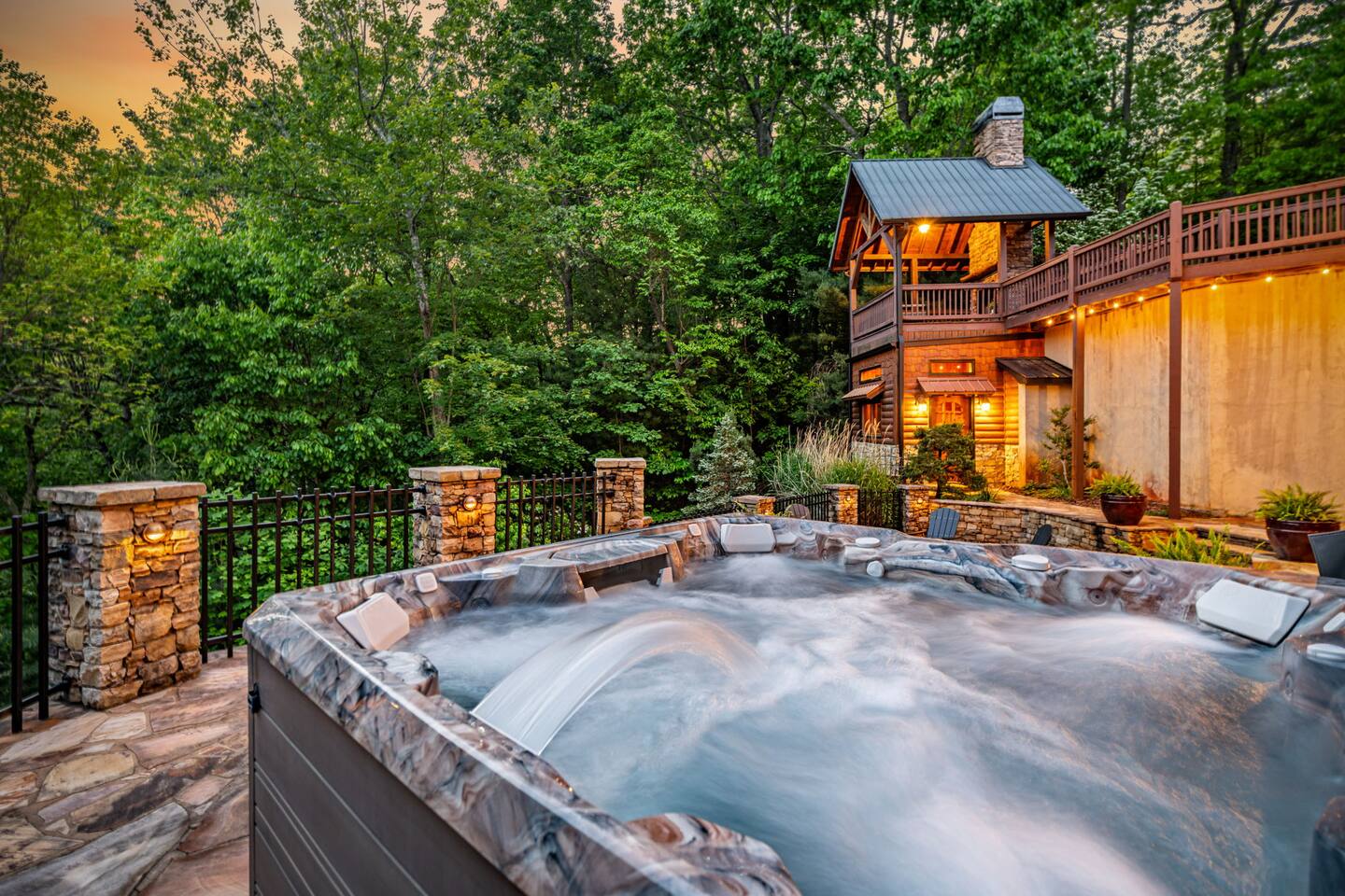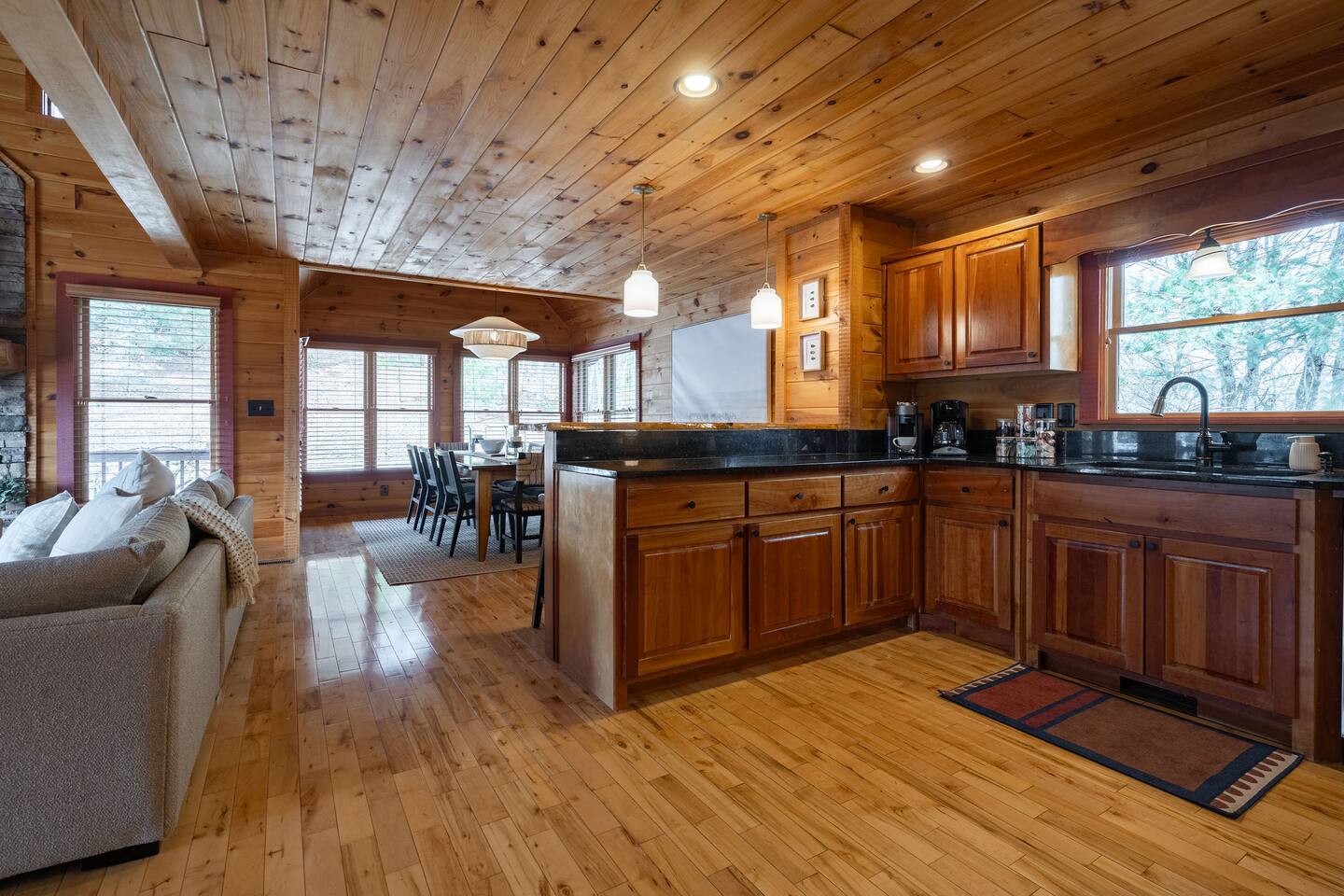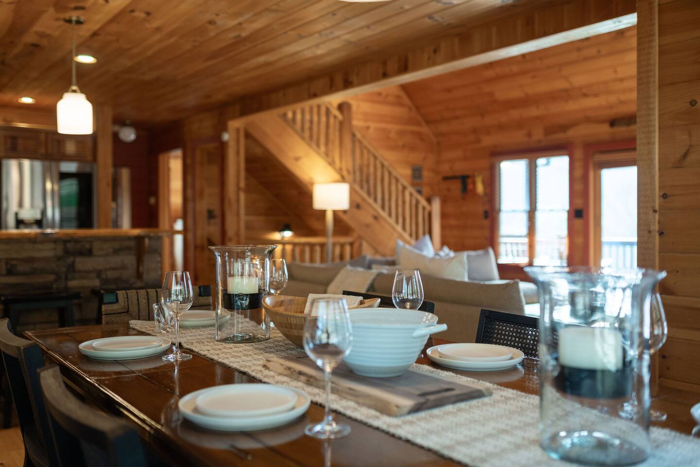 🔥All-paved roads – gated community with no narrow, gravel roads. 🔥Vintage Lounge – Retro-style bar with barware, drink cooler, and arcade game. 🔥Fitness Room – Peloton bike (BYO login), yoga gear, and dumbbells. 🔥Outdoor Retreat – Two balconies plus a stone patio with a hot tub and fire pit, all with stunning views. 🔥Cozy Sleeping Loft – Camp-style loft with three twin beds. 🔥Coffee Bar – Nespresso Vertuo, drip coffee maker, ground coffee, and various sweeteners and creamers. 🔥Cozy Fireplaces – Gas and wood-burning options for warmth and ambiance. 🔥Bluetooth Speaker – Enjoy your favorite music. 🔥Weber gas grill – Propane provided. 🔥Al Fresco Dining – Two outdoor dining areas, one on each level, with scenic views. **Signed rental agreement & $300 security deposit hold required upon booking**