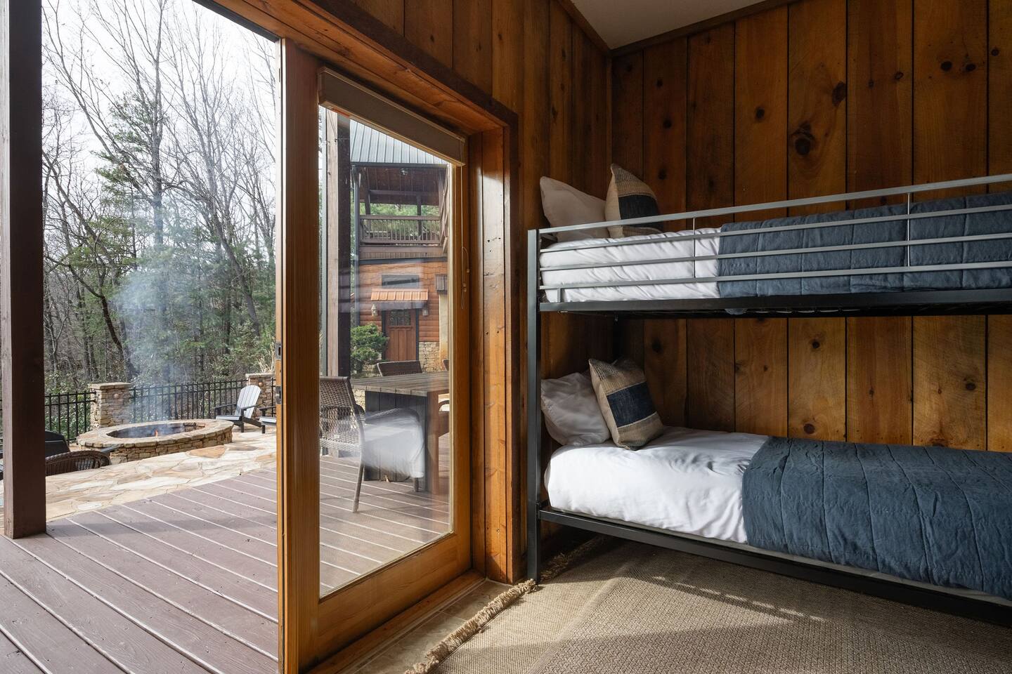 Campfire Crest – Three Levels of Mountain Comfort with sweeping mountain views in Blue Ridge, GA. MAIN FLOOR Soaring ceilings, a grand stone fireplace, and a cozy sectional set the scene for relaxation. The fully stocked kitchen includes a coffee bar with ground coffee, creamers, sweeteners, and a starter pack of Nespresso Vertuo pods (bring extras!). A king bedroom and full bath offer convenience, while the expansive porch features rocking chairs, an outdoor dining area, and a grill, all with breathtaking mountain views. UPPER LEVEL A twin sleeping loft for three brings camp nostalgia, while a king bedroom includes a private coffee station and porch for quiet mornings with stunning mountain views. A full bathroom with a tub and shower completes the space. LOWER LEVEL The ultimate lounge, featuring a vintage arcade game, board games, a classic bar, and a gas fireplace. This level also has a queen bedroom with twin bunks and a full bath with a shower. Step outside to a second dining area, lounge space, fire pit, and a large hot tub for stargazing. BASECAMP FITNESS Stay active with a Peloton (BYO login), yoga gear, light dumbbells, and a Smartbell. (For guests 18+.) Book your stay at Campfire Crest and relive the magic of summer camp—no matter the season! PLEASE NOTE ✅ Rental Agreement & Deposit – A signed rental agreement & $300 security deposit hold are required upon booking. ✅ Security Camera – A Ring camera is on the front porch, facing the driveway for safety. No cameras inside. ✅ Ladybugs – You may spot some harmless ladybugs, a common sight in mountain settings. ✅The indoor fireplace is operational from October - April. ✅ This cabin is strictly pet-free due to allergies. Thanks for understanding and helping us keep the space safe and comfortable for everyone! ❄️ Mountain roads in North Georgia aren’t typically treated for snow or ice, so if winter weather is in the forecast, please plan ahead and drive with care. STVR Certificate: 39158